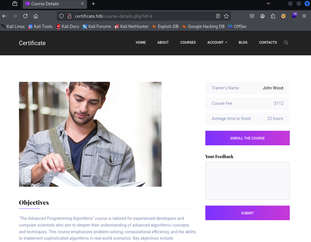 | lorra.aaa@certificate.htb | $2y$04$bZs2FUjVRiFswY84CUR8ve02ymuiy0QD23XOKFuT6IM2sBbgQvEFG |