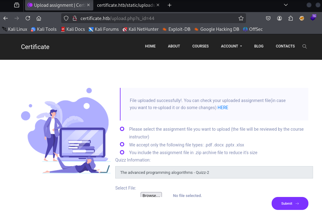 Certificate is a hard difficulty active directory machine with an upload vulnerability as foothold.