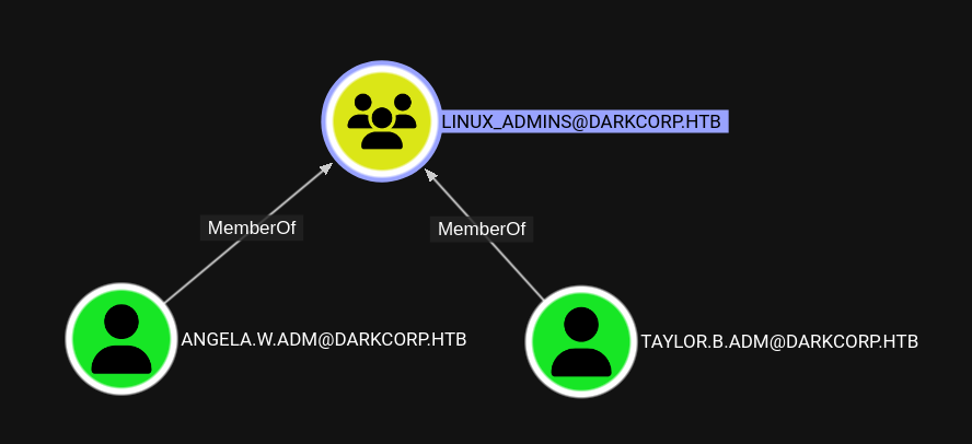 Members of the group LINUX_ADMINS look like promising targets. Either of them will work for the next steps.