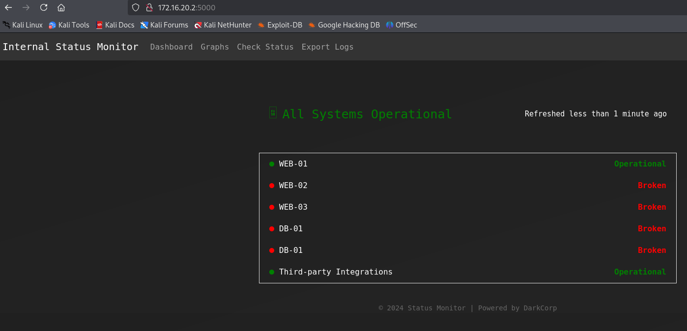 An XSS vulnerability allows us to read emails of other users and get access to an analytics dashboard. Using an SQL injection we can get a shell on a linux machine. Decrypting a postgres backup gives us ssh credentials for this machine and a valid active directory user. A web application on another machine is vulnerable to a command injection which gives us a shell and, after impersonation, administrator access to it.
