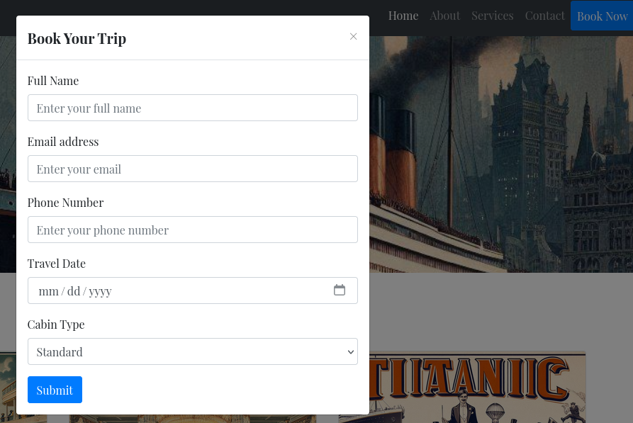 It seems mostly non-functional but upon clicking the Book Now button there is a form we can fill out and submit