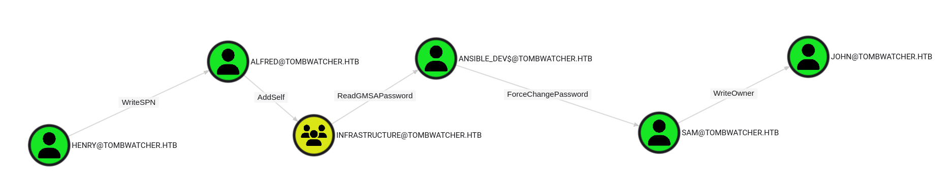 As is common in real life Windows pentests, you will start the TombWatcher box with credentials for the following account: henry / H3nry_987TGV!